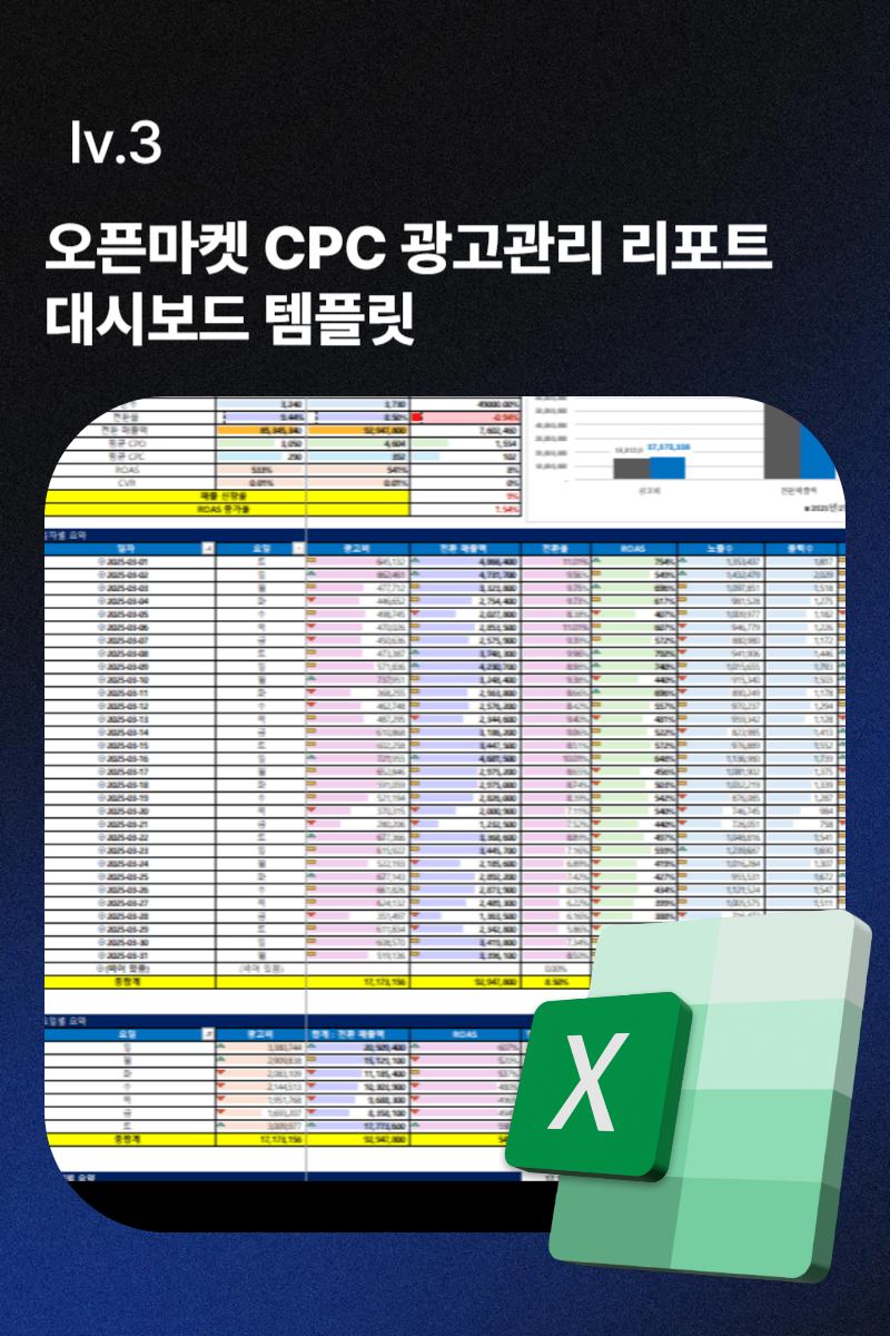 오픈마켓 CPC 광고관리 리포트 대시보드 템플릿 (키워드 성과분석,운영전략 자동수립)