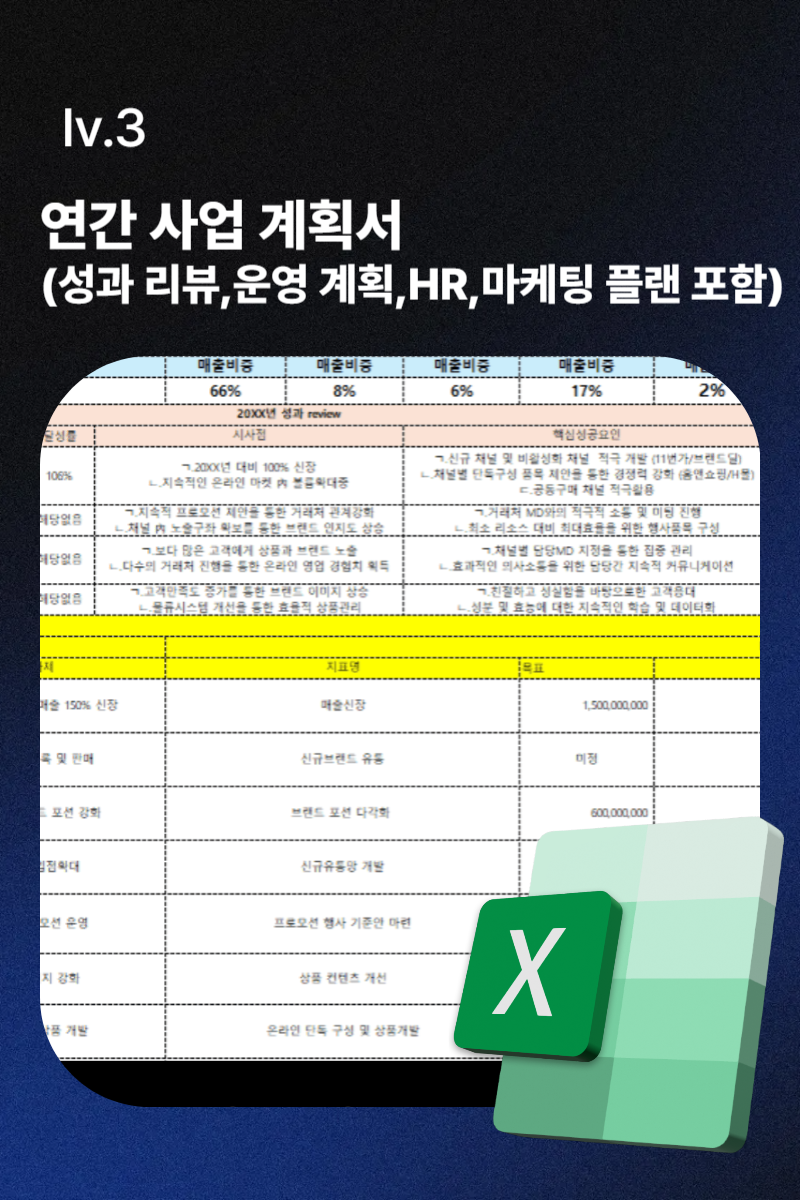 연간 사업 계획서 (성과 리뷰,운영 계획,HR,마케팅 플랜 포함)