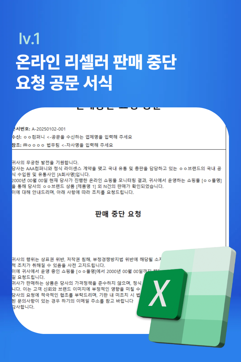 온라인 리셀러 판매 중단 요청 공문 서식